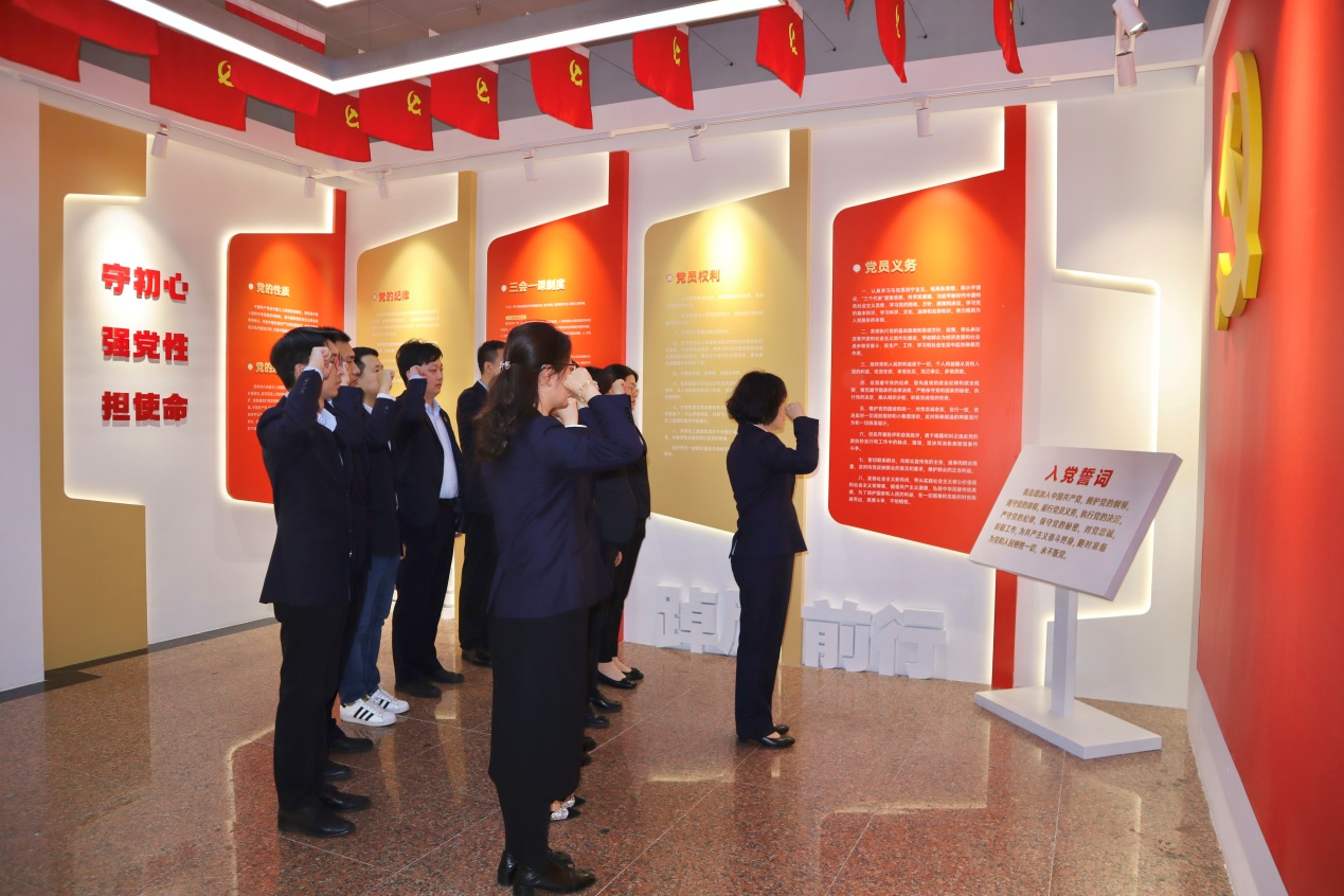 鏗鏘誓詞,字字千鈞。在革命烈士紀念館黨員宣誓室內,全體黨員面向中國共產黨黨旗,高舉右手、緊握拳頭,以鏗鏘有力的聲音重溫入黨誓詞,重憶入黨初心,再一次接受黨性洗禮。大家立志繼承先烈遺志,銘記先烈偉績,延續紅色血脈,堅定前進信念,在新征程上扛起“爭當表率、爭做示范、走在前列”的責任擔當。