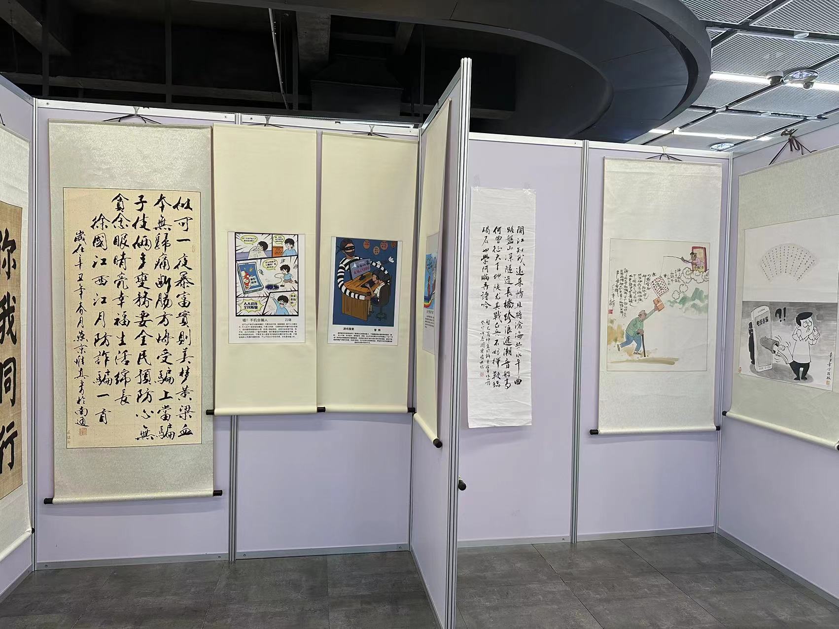 活動以現場宣講、有獎互動、書法展覽等形式開展。活動中,南通地區黨支部“青年志愿者”主動擔起“反詐宣傳員”和“展覽講解員”,一邊在現場為市民講解反詐書畫作品展內容,一邊向市民講解常見的詐騙形式,提升群眾反詐防范意識。活動現場,還通過有獎問答的形式,調動市民對了解反詐小知識的積極性,答對的市民可領取帆布包、手持風扇等禮品,進一步提升市民風險防范的主動性和應對能力。