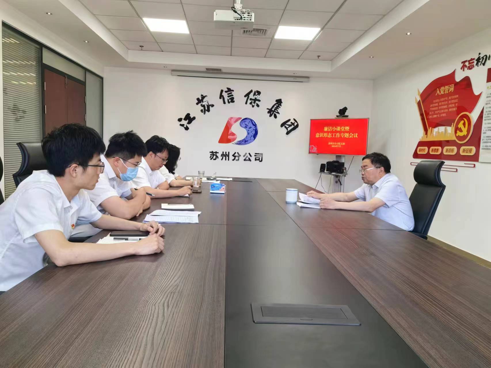 7月5日,蘇州分公司黨支部舉辦“廉潔小課堂”暨意識形態工作專題會議,全體黨員參會。