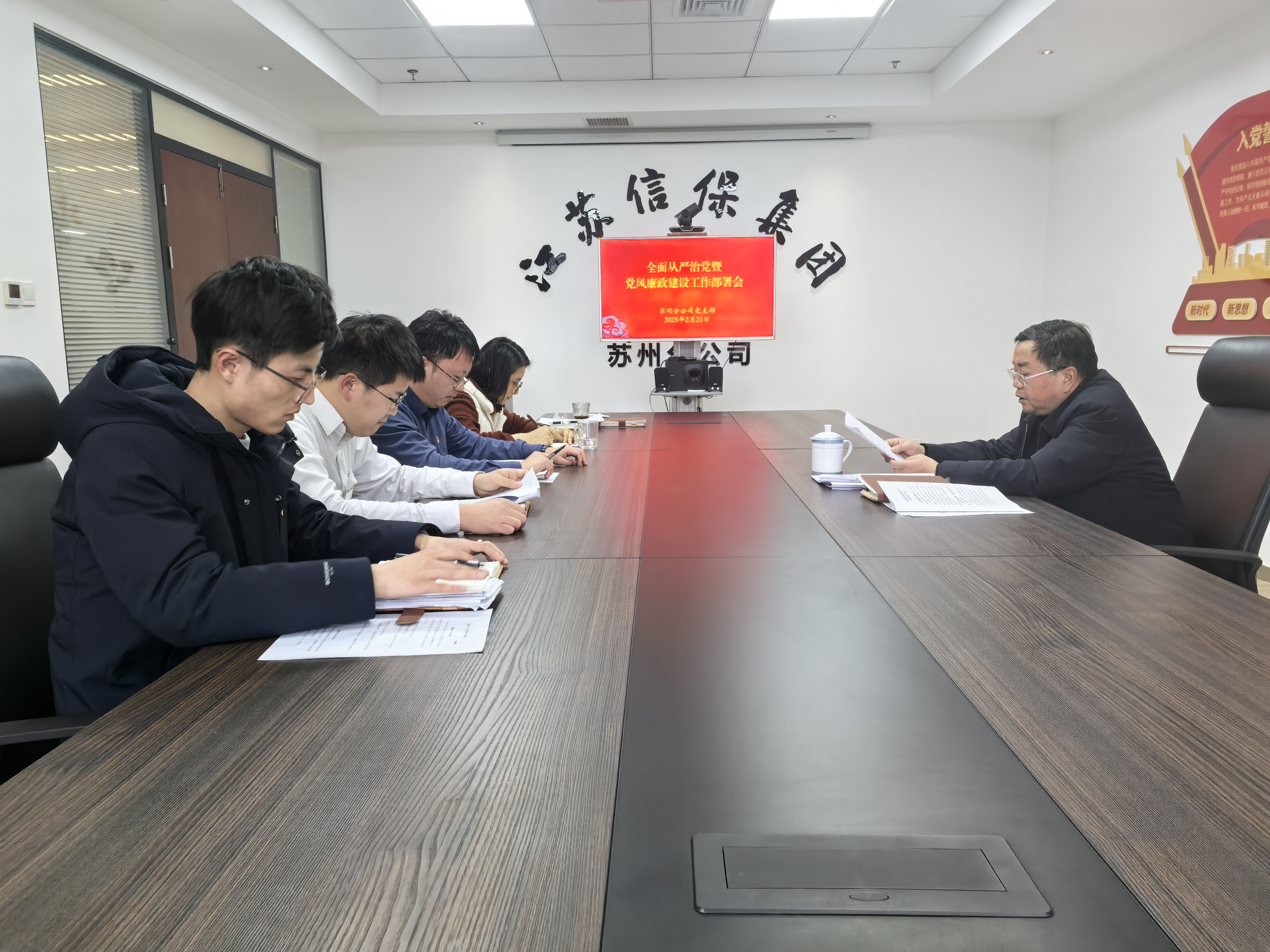 2月21日,蘇州分公司黨支部召開全面從嚴治黨暨黨風廉政建設工作部署會,全體黨員參會。