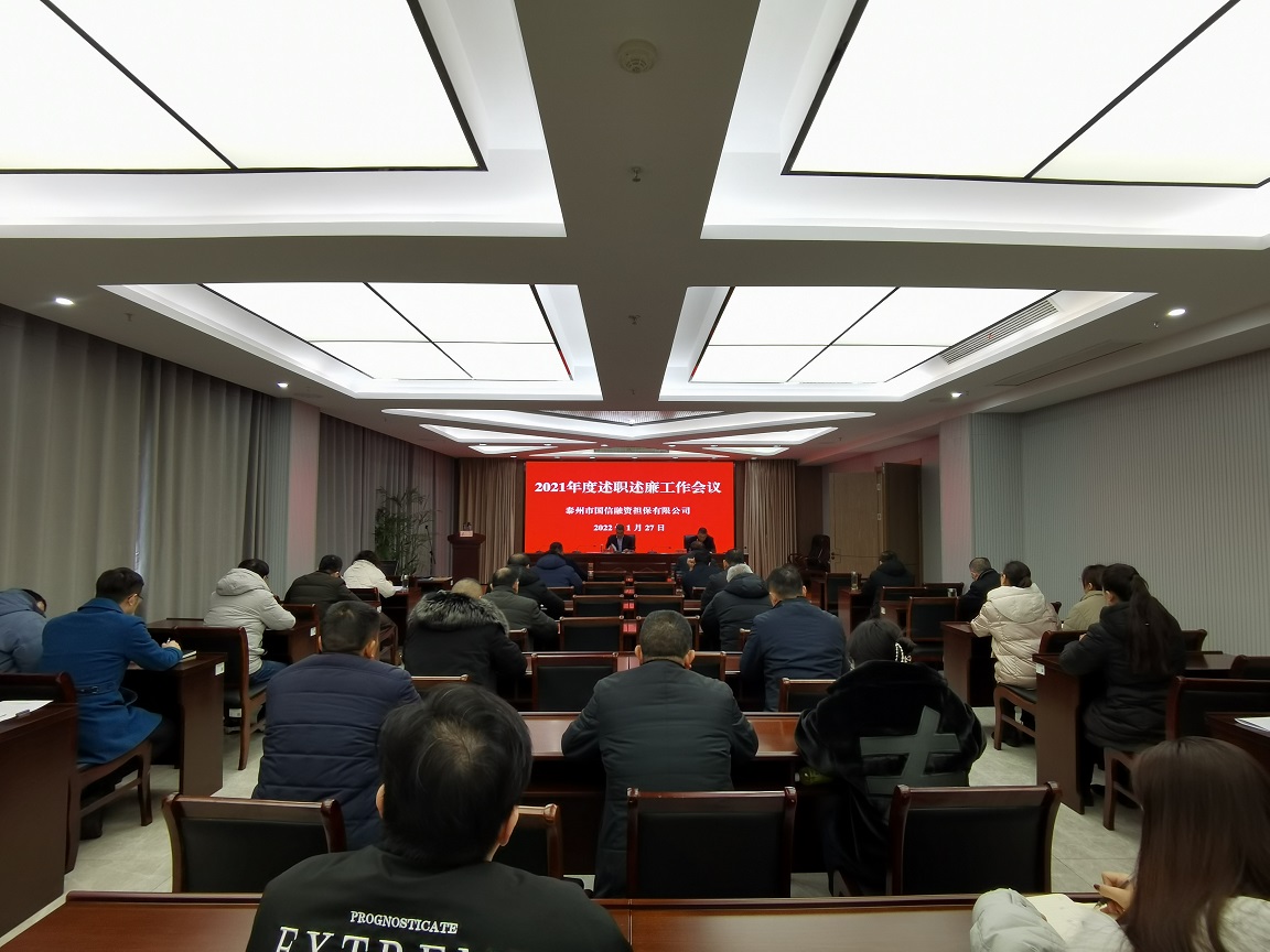 1月27日,泰州國(guó)信擔(dān)保召開2021年度公司中層以上干部述職述廉工作會(huì)議。董事長(zhǎng)房健康,公司全體員工參加會(huì)議,總經(jīng)理彭兵主持會(huì)議。