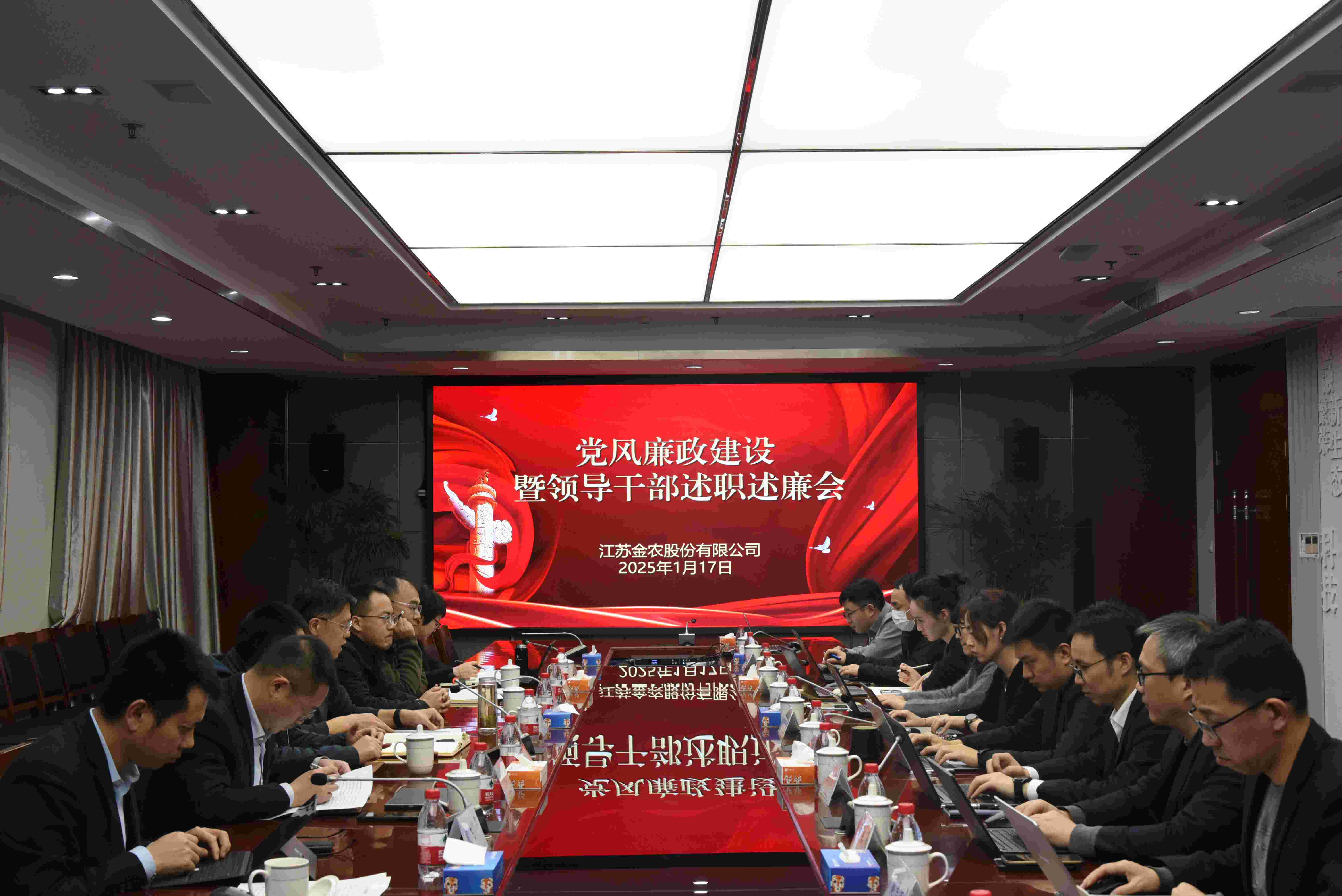 1月17日,為認真學習貫徹習近平總書記在二十屆中央紀委四次全會上重要講話精神,金農公司召開黨風廉政建設暨領導班子成員述職述廉會議。集團黨委組織部(人力資源部、黨群工作部)、紀律檢查室派員對2024年度公司領導班子履職及落實黨風廉政建設責任制等情況進行考核測評,對公司選人用人工作進行民主評議。