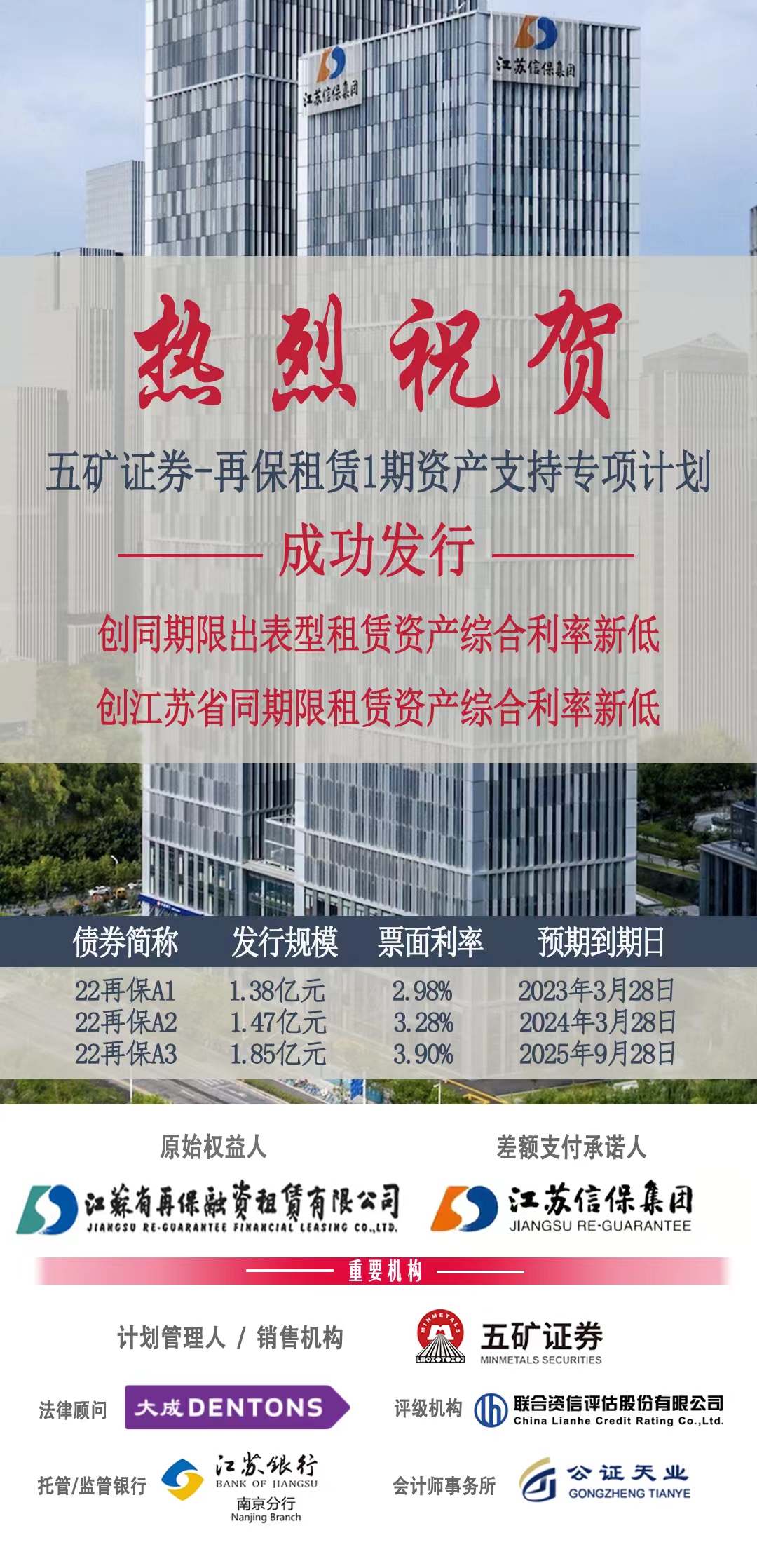 4月8日, 融資租賃公司首次在上海證券交易所發(fā)行總規(guī)模為4.99億元的出表型ABS產(chǎn)品—“五礦證券—再保租賃1期資產(chǎn)支持專項計劃”。此次發(fā)行取得圓滿成功,綜合利率創(chuàng)同期限同類資產(chǎn)最低。