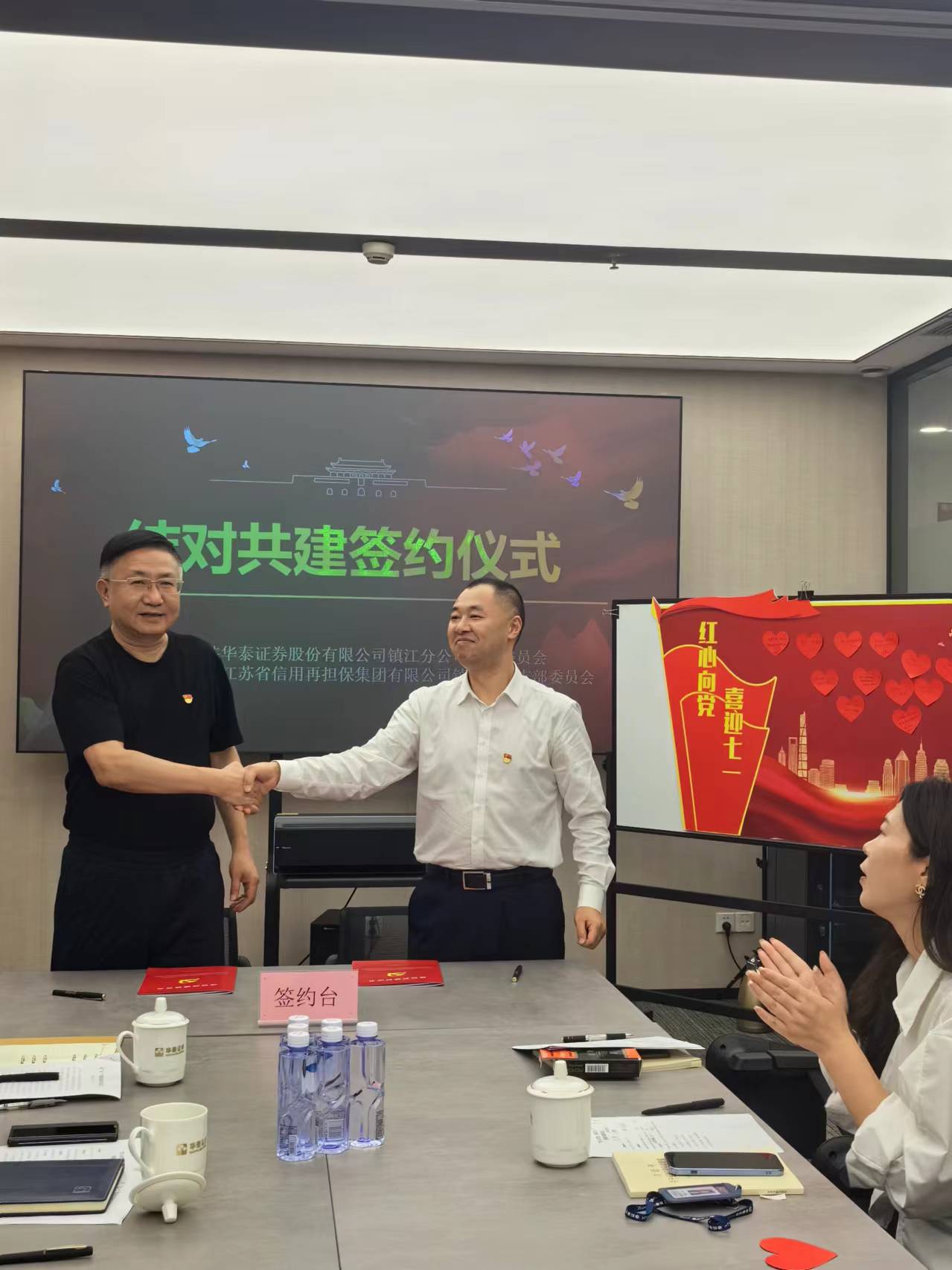 為慶祝中國共產黨成立103周年,加強黨組織之間的交流與合作,共同推動黨建與業務融合工作邁上新臺階。7月1日,鎮江地區黨支部與華泰證券鎮江分公司黨支部聯合開展“紅心向黨,喜迎七一”黨建共建活動。